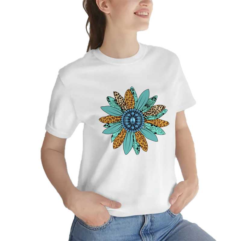 Tricou damă cu mânecă scurtă și imprimeu floare leopard din bumbac 100%